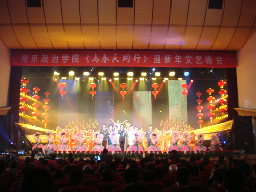 20081230晚,由 国产成人视频 舞美中心团队承担制作舞美、灯光的《与春天同行》南京政治学院迎新文艺晚会在该校剧场隆重上演。南京政治学院院长王日中少将在晚会致辞中对晚会的舞美灯光给予了高度的评价,他指出:“本场晚会取得了空前的成功,一方面归功于精彩的表演;另一方面也归功于舞美灯光的完美呈现。”本台晚会即将在中央电视台第七套军事频道播出。