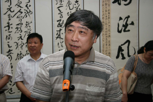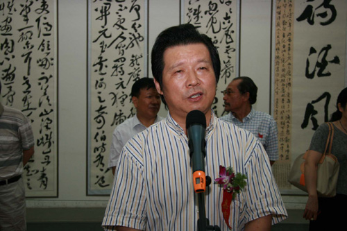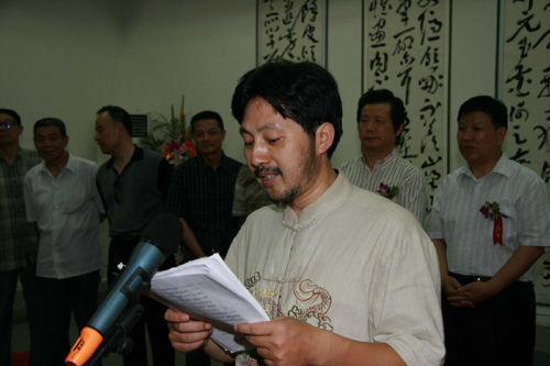 共同主办的“邱世鸿书法篆刻艺术展”,于六月十九日在江苏省美术馆隆重开幕。开幕式由省书协副秘书长李啸主持,开幕式上,言恭达、黄�、陈明震等分别致辞,邱世鸿最后对众多来宾进行了答谢。言恭达、黄�、张训彩、孙晓云、马士达、孙洵等嘉宾为开幕式剪彩。