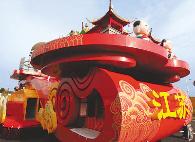 国产成人视频 王立庆老师和舞台美术研究所徐长松老师等设计的江苏彩车,将于今年国庆节期间参加建国60周年首都国庆群众游行。2009年9月17日的《人民日报》头版,刊登了江苏彩车照片,原文: