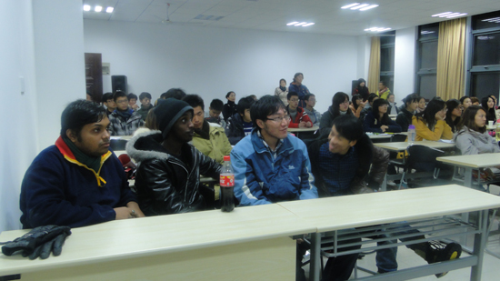 在接下来的示范环节,现场的两名外国留学生依次充当了速写模特,