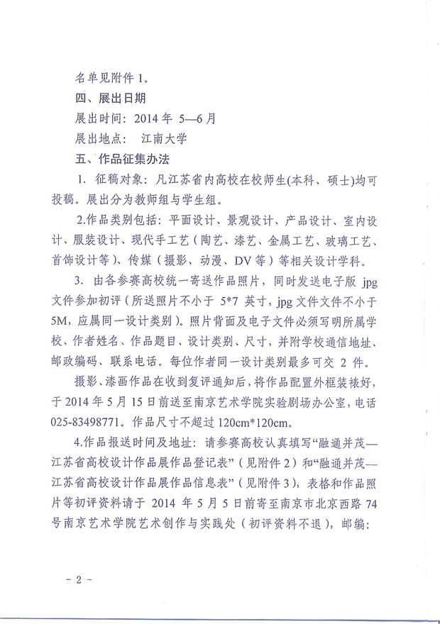 省教育厅办公室关于举办“融通并茂―江苏省高校设计作品展”的通知