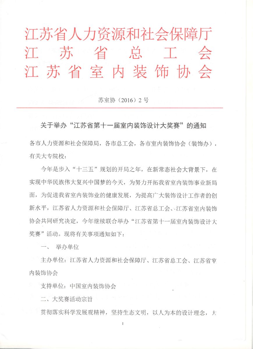 江苏省第十一届室内设计大奖赛通知