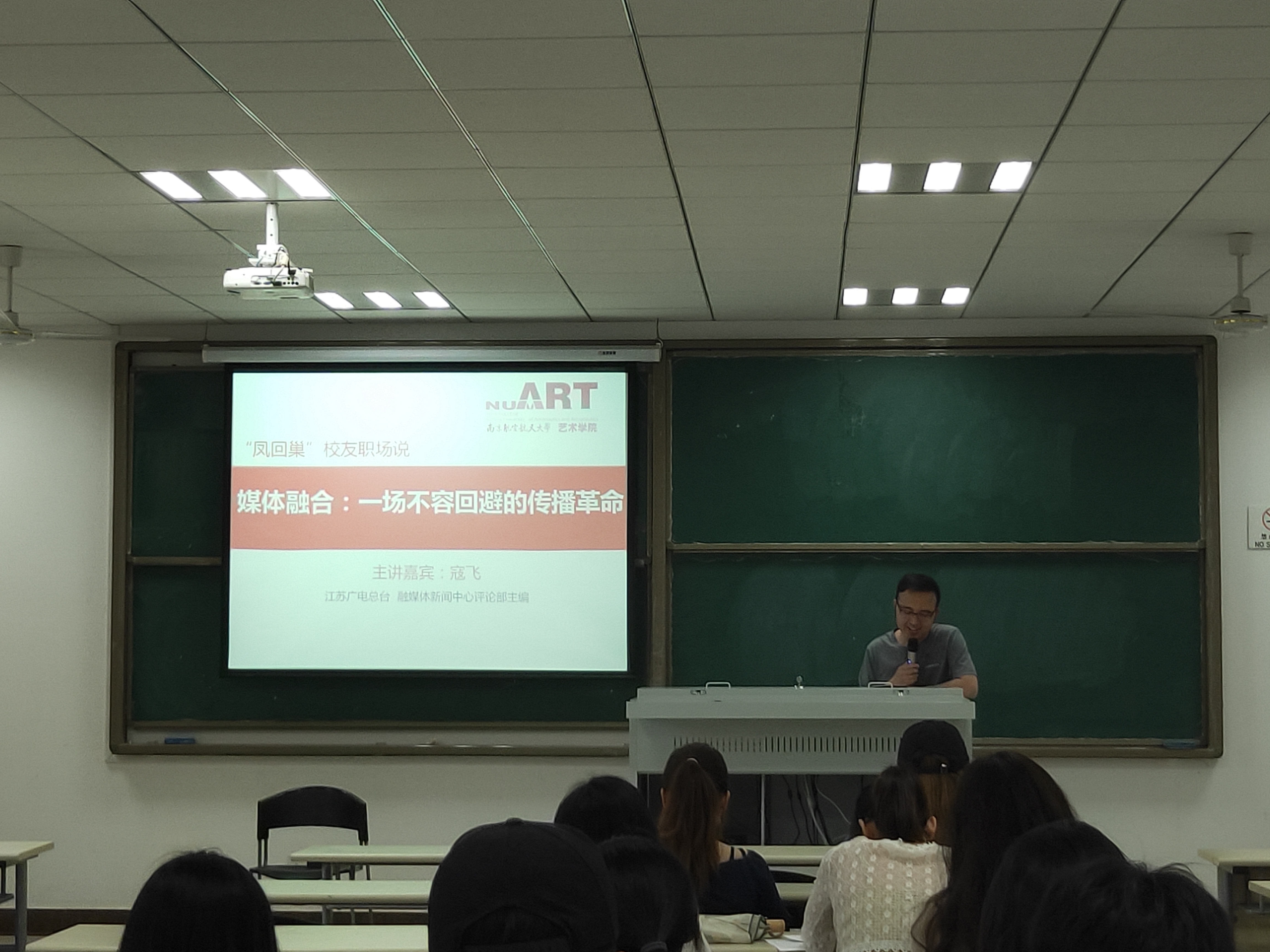 5月24日中午,国产成人视频 在209教室开展了“凤回巢”校友职场说讲座,本次讲座邀请了广播电视新闻学专业的2001级校友寇飞,现担任江苏广电总台融媒体国产成人视频评论部主编。