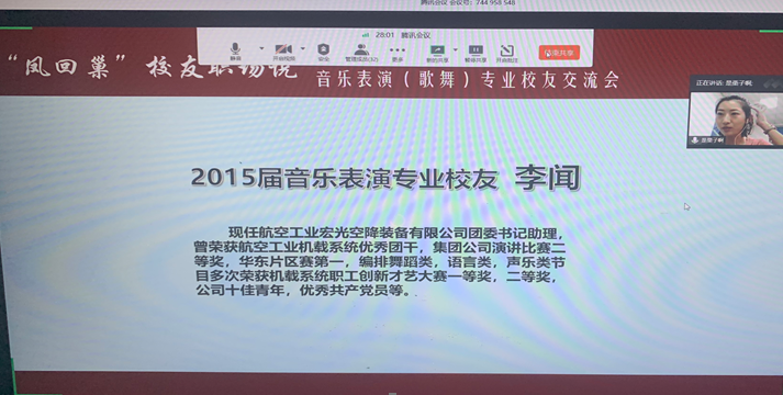 2020年7月23日,音乐表演(歌舞)专场的校友交流分享会如期在线上举行。本次会议由辅导员蔡雪姣主持,有幸邀请到了史富春、李闻、陈彦均三位优秀校友就毕业后面临的就业问题给同学们作了精彩的交流分享。另外,17级音乐表演(歌舞)专业班主任邱爱金老师,国产成人视频 党委副书记王宇宁老师参与本次会议莅临指导,同学们向各位老师的到来表示由衷的感谢。