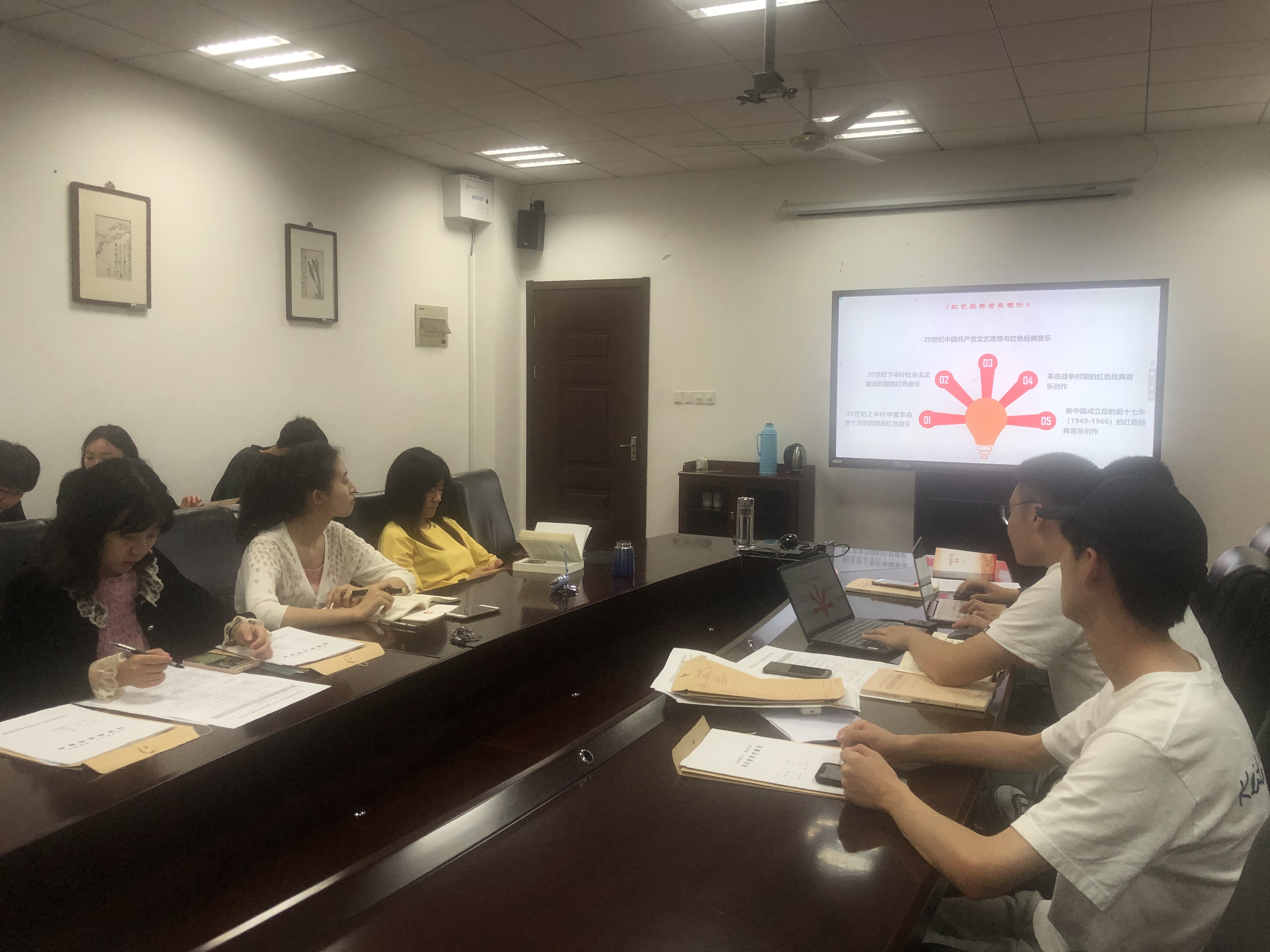 支部书记谢坚首先与支部全员分享了《红色经典音乐概论》,书中对20世纪上半叶中国革命各个历史时期的红色音乐——“抗日根据地时期的红色音乐”、“解放战争时期解放区的红色音乐”、“20世纪下半叶社会主义建设时期的红色音乐”、“20世纪八九十年代的红色音乐”等章节进行了详细介绍,梳理了中国共产党百年历史各个时期的红色经典音乐,以红色经典音乐的方式讲述了百年党史。