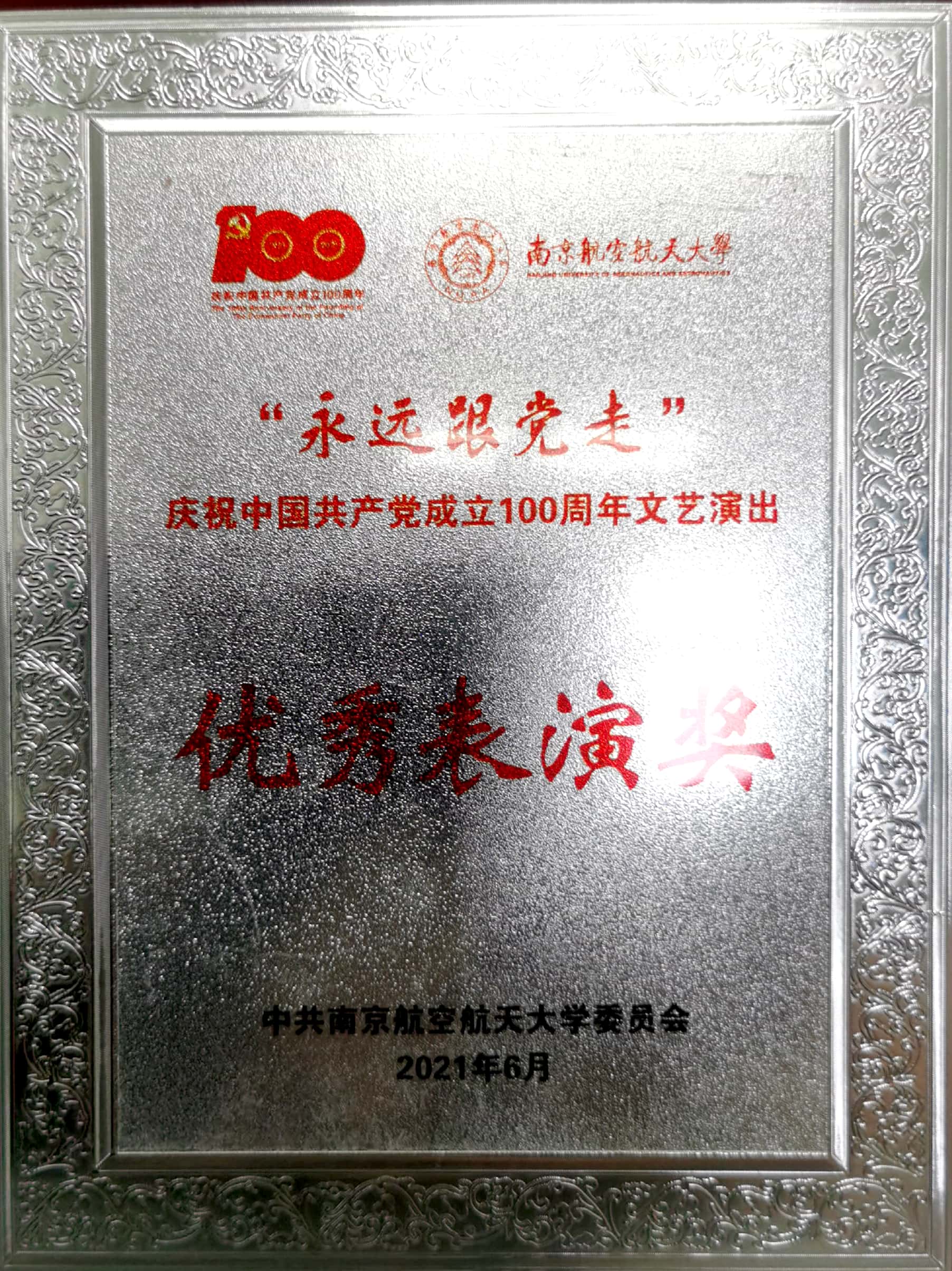6月30日,在学校举行的“永远跟党走”庆祝中国共产党成立100周年文艺演出中,国产成人视频 因优异的表现,获得了优秀组织奖、优秀表演奖两项殊荣。