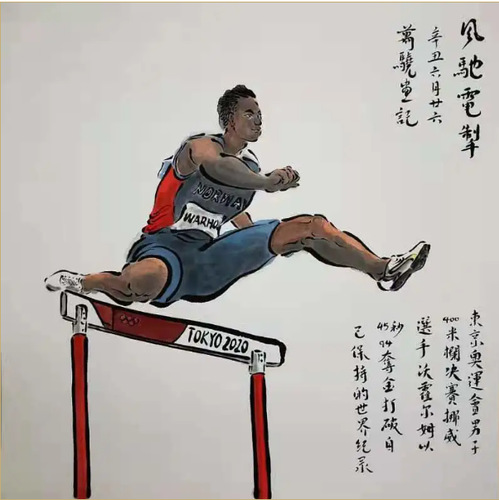 东京奥运会已经结束了,但是这些画作却将奥运健儿们在赛场上的精彩时刻永久保留,健儿们的飒爽英姿也在笔毫和水墨间得以充分展现。