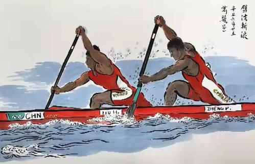万骁在绘制这些体育题材的人物画时,采用的是放笔直取的创作手法,以表现运动健儿的形神兼备。