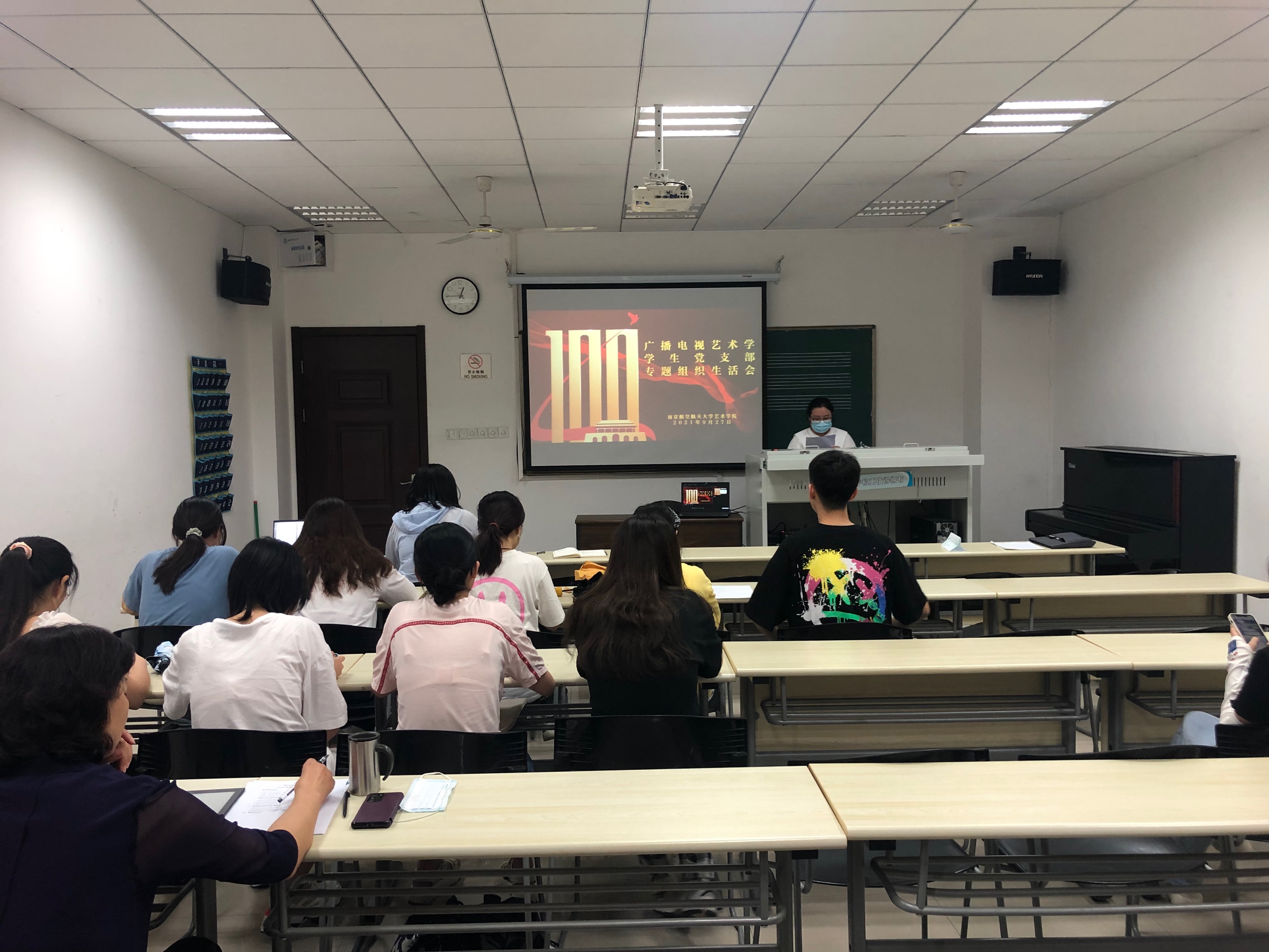 2021年9月27日中午,国产成人视频 广播电视艺术学学生党支部于国产成人视频 105教室开展党史学习教育专题组织生活会。支部副书记郭爱桦同志主持会议,学院党委书记张钟勤出席会议。