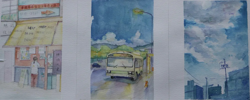 这是我第一次接触水彩,在技法上仍有很大的提升空间,但是我很感谢这门课程,不局限绘画的对象与思考,让初学的我能在画纸上“畅所欲言”。起初我阅览了许多水彩大师的作品,取他人之所长,慢慢的也找到了自己的风格,逐渐领悟了水彩画的精彩,也希望未来我能不断提升自己,做到中国绘画那样“外师造化,中得心源”。