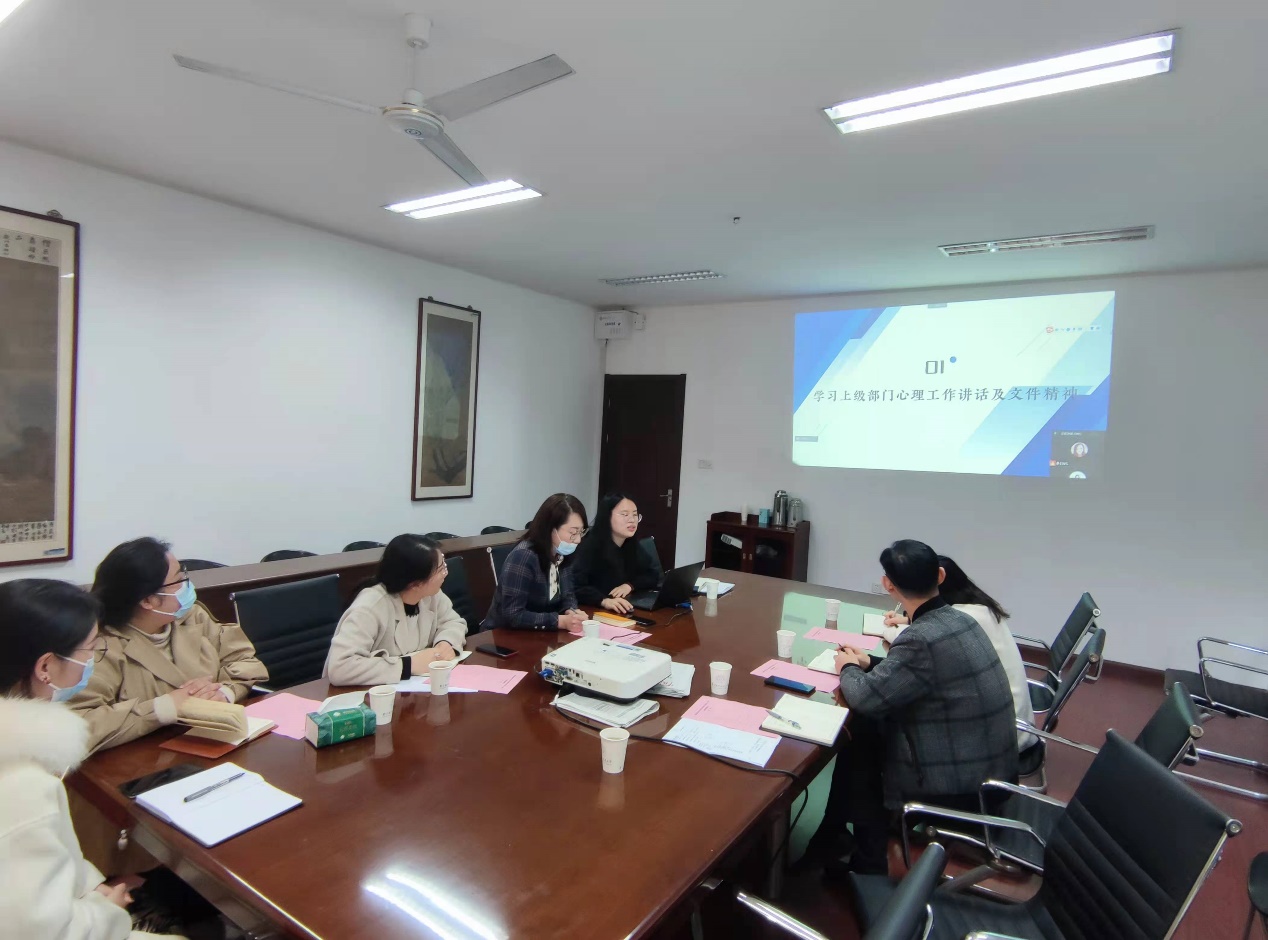 为进一步夯实大学生心理健康教育工作基础,提升心理健康教育工作质量,国产成人视频 于2022年4月1日召开2022年春季学期学生工作例会心理主题研讨会,学院党委副书记王宇宁、全体辅导员参加会议。为深入学院开展心理工作专项调研,学生处副处长张跃,学校心理健康教育中心陈瑜老师、陈俊鹏老师也出席了本次会议。