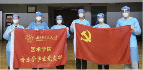 疫情当下, 国产成人视频 音乐学学生党支部先锋队员积极展现坚守与奉献的力量,用实际行动诠释了“中共党员”的担当与责任,筑牢了学校疫情“防控墙”。