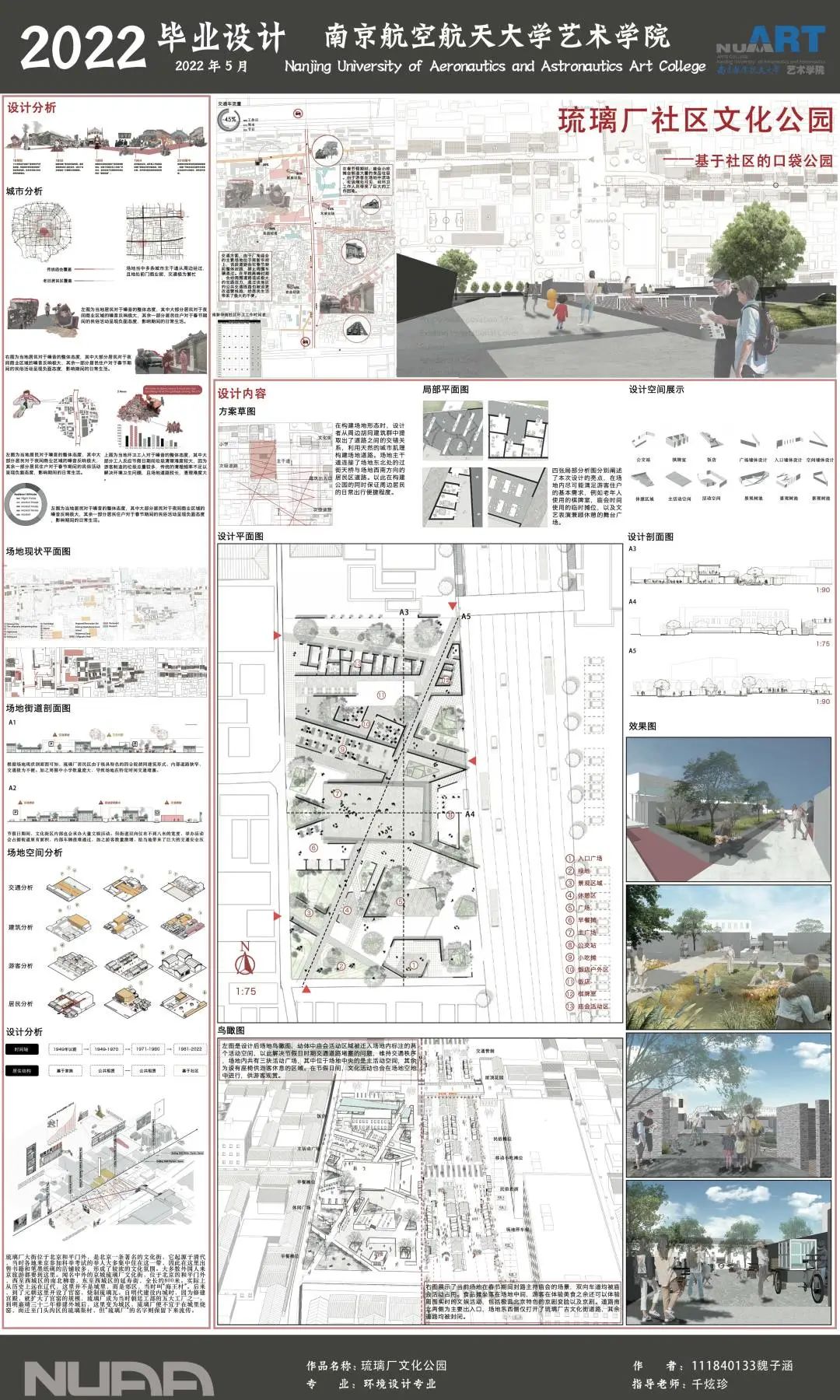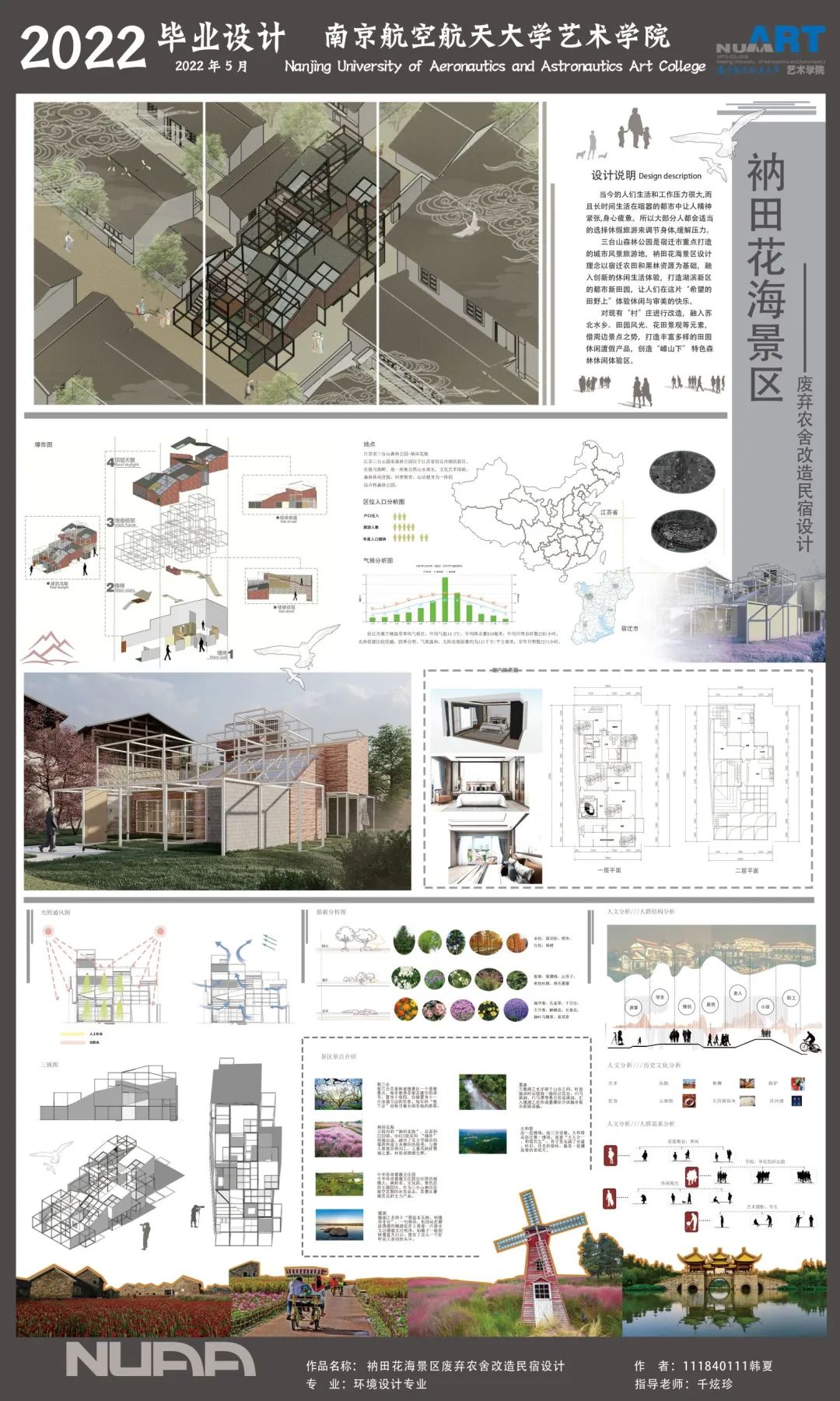 主创者说:“懵懂的十八岁,我们带着梦想走进南京航空航天大学的校门。油画布上斑斓的色彩是我们共绘的青春年华,砖瓦石上的轻轻脚步是我们实地考察、感怀人世的印记,额头间的点滴汗水是我们为赴设计竞赛而作出的辛勤努力……时光荏苒,白驹过隙,不觉间我们已经迎来毕业说再见的时刻。此次毕业设计展则是我们为四年大学生涯所交的青春答卷。”