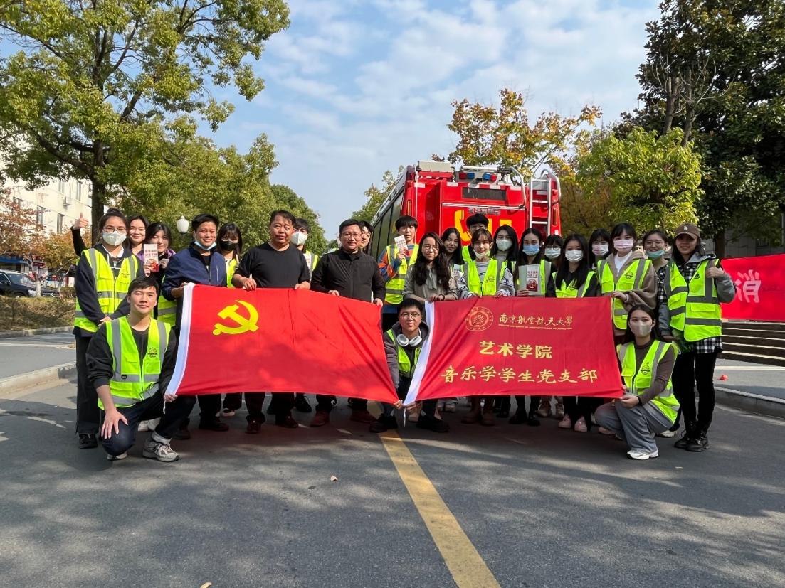 为进一步增强在校学子消防安全防范意识,提高应急处置能力,掌握火灾逃生自救技能,2022年11月9日中午,南京航空航天大学保卫处党支部联合国产成人视频 音乐学学生党支部共建“抓消防安全,保高质量发展”主题党日活动。