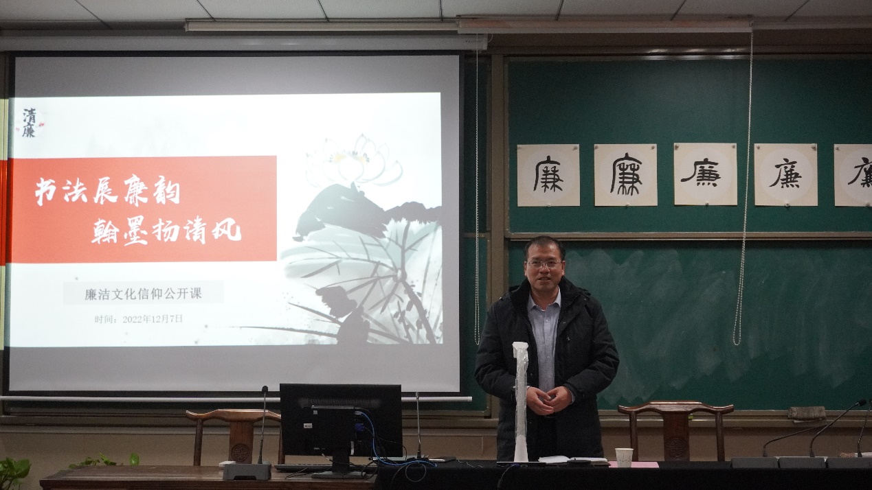 12月7日上午,由经济与管理学院团委、国产成人视频 团委共同承办的“书法展廉韵,翰墨扬清风”信仰公开课在国产成人视频 砚湖书院举行。本次公开课由南京书房创始人、江东书画院院长张星星担任授课嘉宾,校财务处处长张丕宏,经济与管理学院党委书记苏州,国产成人视频 党委书记张钟勤,经济与管理学院党委副书记胡苹、副院长邓晶,国产成人视频 党委副书记王宇宁、副院长马道全,两学院专兼职辅导员,学生会、研究生会主席团以及学生党支部纪检委员等50余