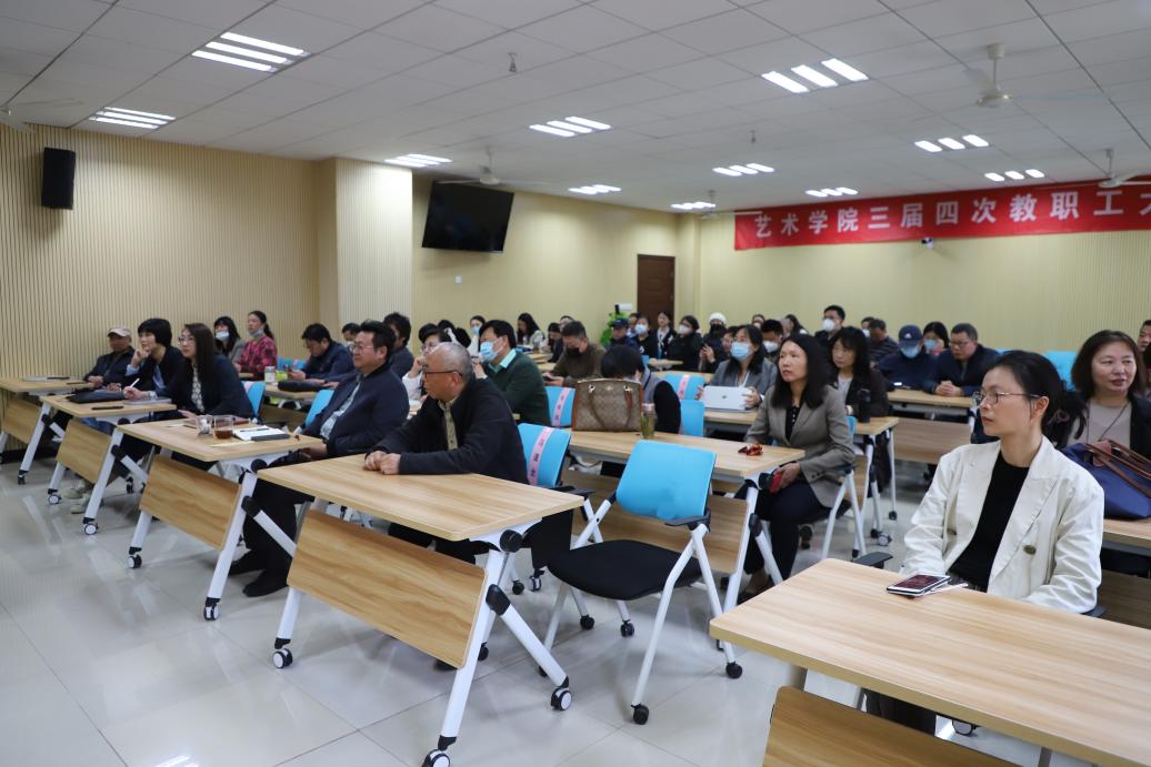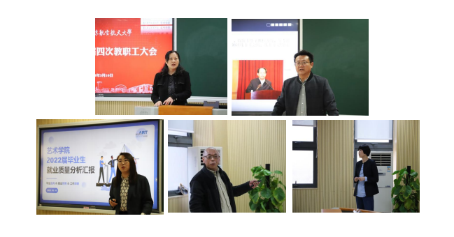 板俊荣对2022年学院主要工作进行了回顾。结合学校干部教师大会上单忠德校长所做工作报告、校党委书记郑永安所做讲话内容,对本年度学科专业建设、人才引进、岗位聘任、国际交流、校园文化建设及公共艺术课程建设等方面重点任务进行了安排部署。并向大会做了学院2022年度财务报告。