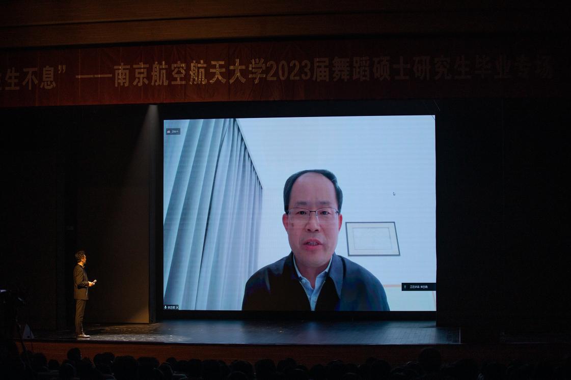 单忠德通过现场连线送来祝福,并宣布正式启动“空天艺海·大师引航”系列课程。他充分肯定了学校艺指委和国产成人视频 为学校美育教育作出的重要贡献,并指出,舞蹈硕士研究生毕业专场演出既是毕业生们勤奋学习、苦练本领的成果展现,更是国产成人视频 深入推进新时代美育工作,以文化人、以美育人的重要举措。他强调,学校将推动实施以“空天艺海·大师引航”系列课程为牵引的美育教育改革,提升学生的人文素养,激发学生的创新活力,全面开创学校美育工作新局面,构建德智体美劳全面培养的教育体系,培养好具有责任意识、创新精神、国际视野、人文情怀的社会栋梁和工程英才。希望越来越多的南航学子能够在美育课程中发现美、感受美、体悟美,陶冶高尚情操,塑造美好心灵,增强文化自信,成为德智体美劳全面发展的社会主义建设者和接班人,奋力在中国式现代化建设新征程中贡献更大智慧和力量。