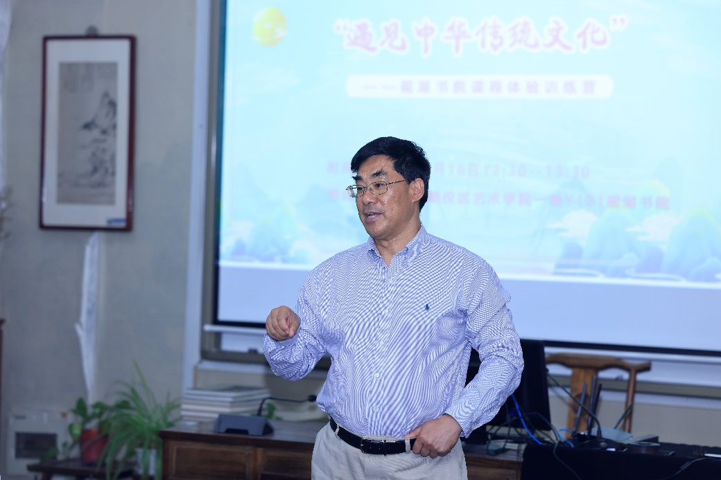 国际教育学院院长金泉元为留学生们做开班寄语,现场与学员们进行热情的交流,他讲到:“这是一个很好的机会,感谢国产成人视频 为我们提供了具有中国传统文化特色的课程,邀请了这么优秀的老师进行授课。传统文化是一条绵绵不绝的河流,是我们中华民族的精神根基,是中国文化领域的重要基石。希望同学们能通过训练营课程感受到中国传统文化的源远流长、博大精深。有兴趣的话,后续也可以继续深入研究,当然也可以在国际上发扬广大。”同时,金院长还强调了本次课程训练营的规范性和纪律性,引导学生积极地参与中华文化的美育教育学习。