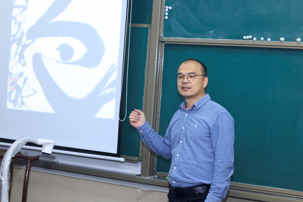 张星星老师:“我非常珍视这次与留学生代表的分享机会,很荣幸参加本次活动,感谢国产成人视频 领导和老师的信任。越是民族的,越是世界的。中国书法以汉字为承载,既是抽象的,也是具象的。留学生是中国文化的接受者,同时也是重要的传播者。我们以“天人合一”为主题和书写内容,期冀留学生代表在体验毛笔书写与书法创作的过程中,深切感悟汉字的深刻内涵和中国文化精神。在课堂上与留学生的交流和互动中,我感受最深的是他们对传统书法的现代性表达,以及对个体汉字释义的强烈兴趣,这也是此次系列活动的意义所在。“