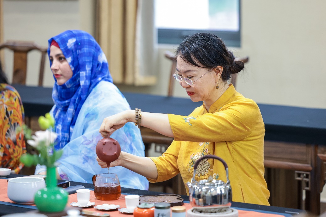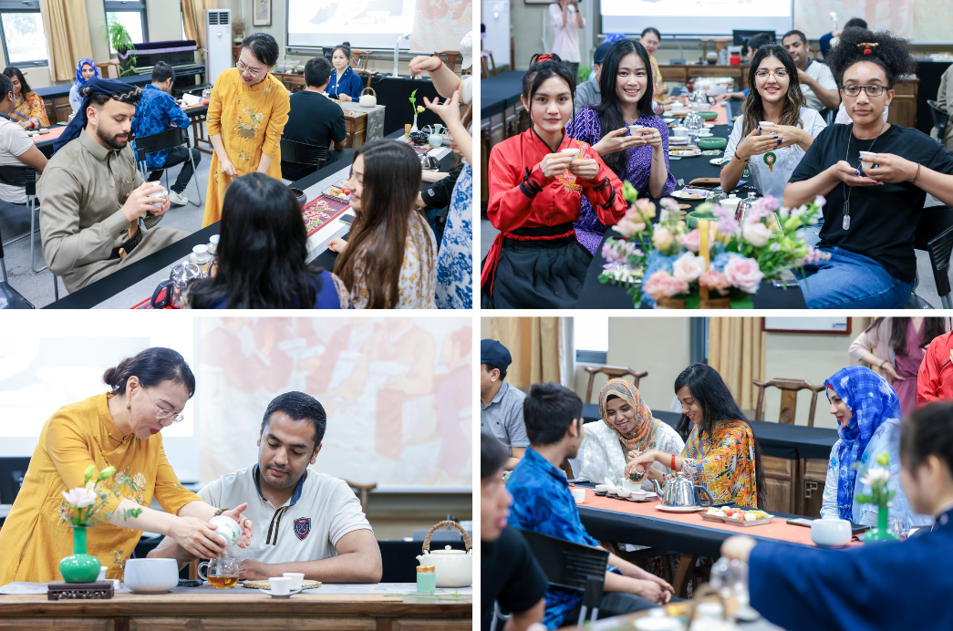 各个环节中留学生们积极参与,纷纷驻足观赏、认真学习礼仪、冲泡技法、品茗方法、与同伴分享自己亲手冲泡的红茶、以礼互应、拍照留念,乐此不疲!