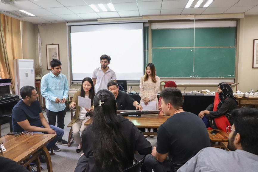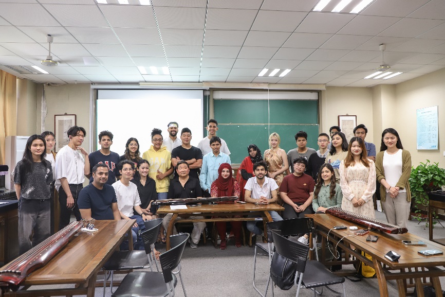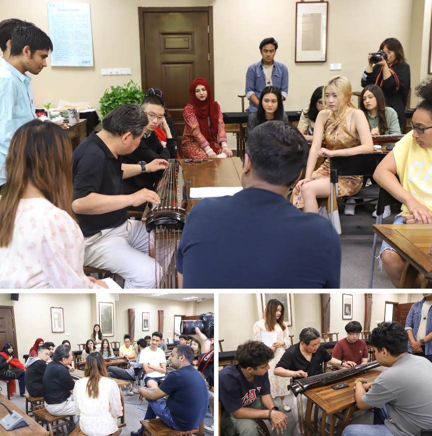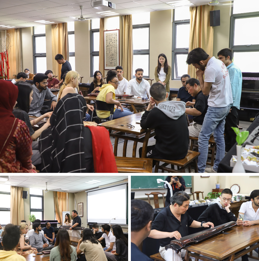 本次古琴课由卞昌荣老师进行授课。在课程的开始,卞老师表示,古琴以其独特的艺术魅力、厚重的文史底蕴,诠释着中华民族传统文化的精髓。以此为契机,向留学生们展示并传授古琴弹奏技巧,有利于传承弘扬非遗文化,激活中国传统文化。
