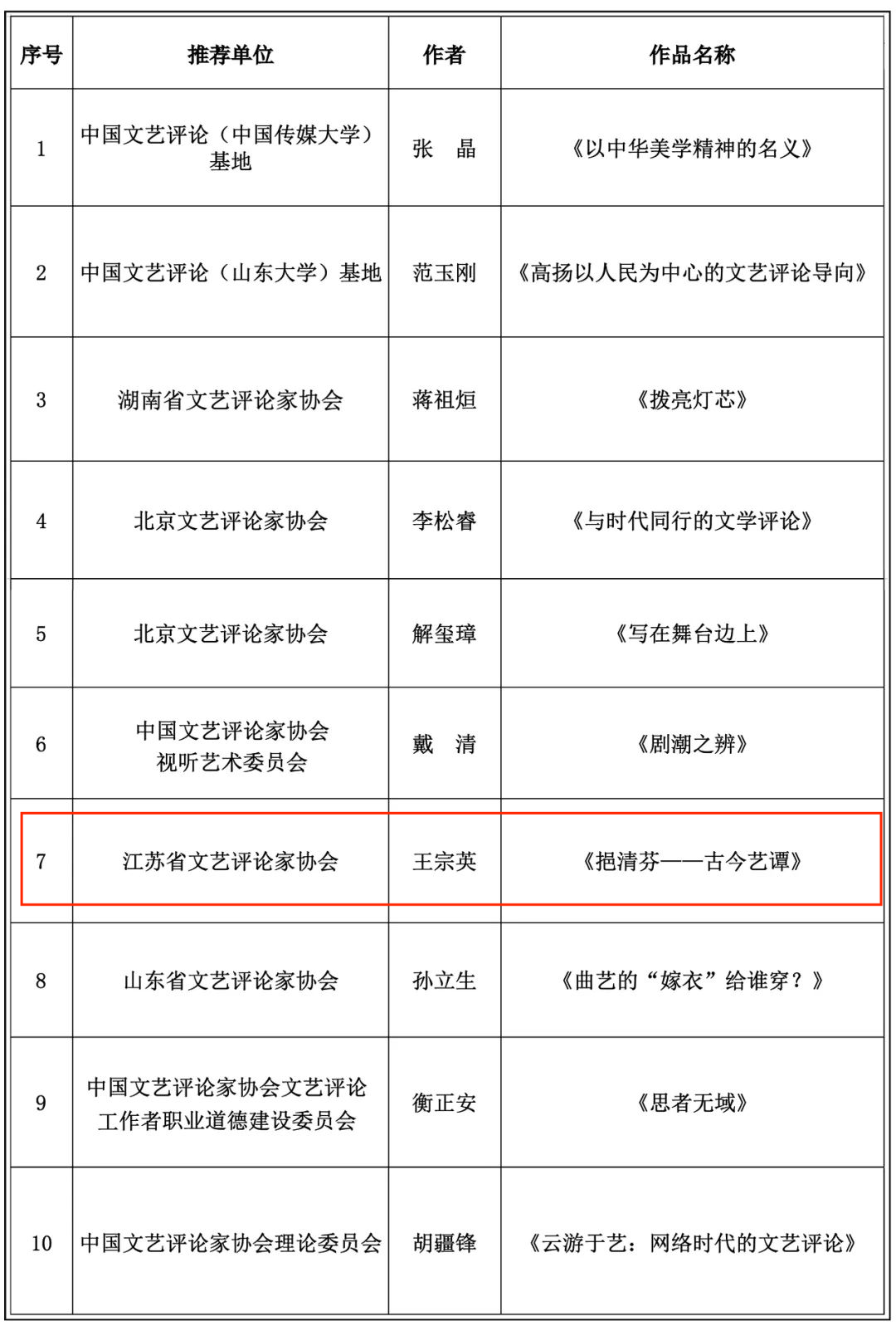 日前,由中国文艺评论家协会、中国文联文艺评论中心、中国文联出版社联合启动的《啄木鸟文丛——文艺评论家作品集》出版计划,发布了纳入2023年的10部作品。江苏省共有2部作品入选。其中,国产成人视频 王宗英副教授的作品集《挹清芬——古今艺谭》,由江苏省文艺评论家协会推荐,入选出版计划。