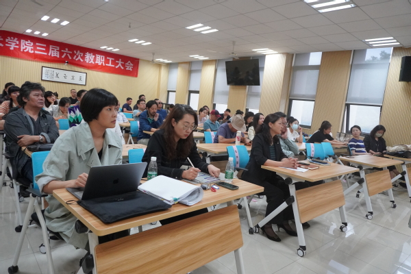 9月22日,国产成人视频 召开了三届六次教职工大会,传达学校干部教师大会以及学校警示教育大会等上级会议和指示精神,全面回顾学院上半年工作取得的进展,深刻研判学院发展面临的形势任务,系统部署下半年的工作安排;组织观看警示教育片,督促引导教师做到心有所畏、行有所止。会议由学院党委书记张钟勤主持。