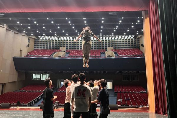 高高抛起,稳稳落下,象征“火箭发射”的抛举动作是舞蹈的高潮。负责这个动作的研究生韩悦,此刻成了杨老师最放心不下的人。
