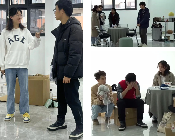 作为一群理工科学生,面对舞台设计所需的上百个纸箱、剧场陌生的灯光设备、角色年龄差带来的人物塑造困难等一系列挑战,剧组的同学们迎难而上,用对戏剧的热爱与执着排除万难,打破艺术专业的壁垒。“非专业的年轻队伍虽然没有任何演出经验,但他们也给我带来了新的灵感。”孟倩倩老师在采访中表示。