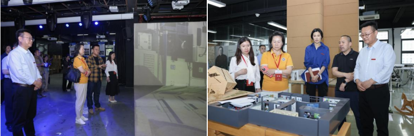 专家组随后参观了国产成人视频 舞美工场、创意工场两个大学生主题创新区。舞美工场和创意工场分别承担着戏剧影视美术设计、环境设计两个本科专业的实践教学、创新训练、课程展演、毕业设计等任务。实验室主任范学智、环境设计专业负责人赵中建先后围绕创新区的规模设施、功能定位、教学运行、课程特色、育人成果等情况作简要介绍。