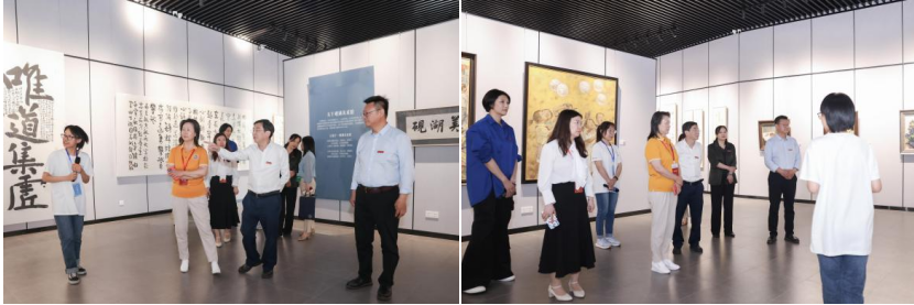 申小蓉一行首先考察了砚湖美术馆。作为实践教学专业平台,馆内近期正在进行由学校教务处、教师发展与评估中心主办、国产成人视频 承办,校党政办公室/发展联络部、将军路校区管理委员会、校大学生艺术指导委员会协办的“春山如笑——国产成人视频 美术系师生作品展”。学生志愿者向专家们进行了专业的讲解。本次展览展出艺术作品共60余件,分为书法、国画、油画和综合材料绘画三个区,主要以书法、中国画、油画、水彩以及速写等艺术形式呈现。书法区选取了刘灿铭、张其凤、邱世鸿、胡光灿等教师的代表作;国画区则采用了最具代表性的工笔花鸟和青绿山水两种进行展示。油画和综合材料绘画区展出作品最为丰富,从立意、构图、笔触、色彩等方面充分展示 国产成人视频 师生不同的艺术个性和创作特征。施大宁表示南京航空航天大学作为一所工科院校,高度重视美育工作,砚湖美术馆正是学校持续推进校园美育的实践成果之一。国产成人视频 始终践行“艺工融合、双向驱动”的发展路径,通过打造砚湖美术馆等文化品牌,丰富校园文化、繁荣美育教育。