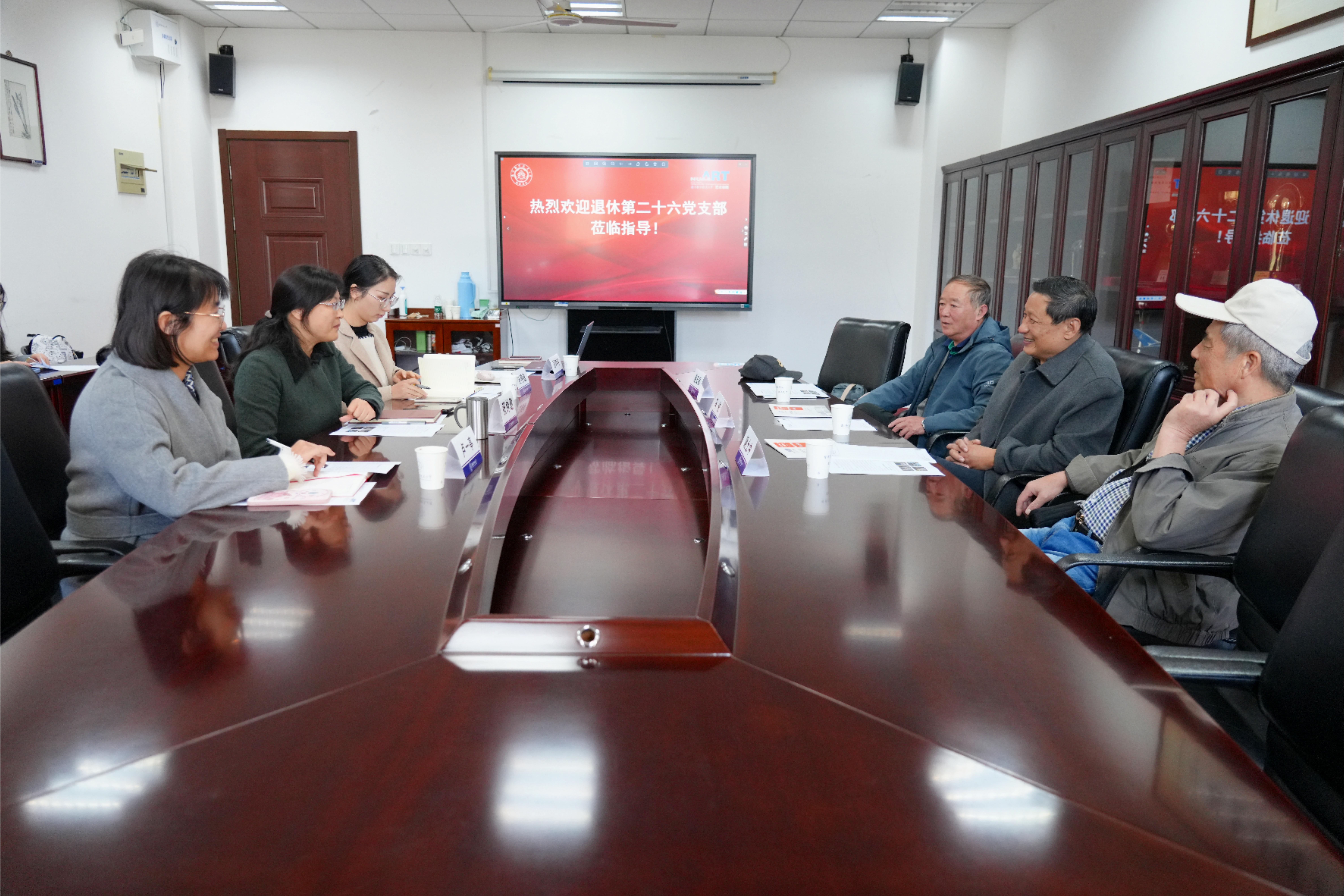 为了深入学习贯彻党的二十大精神,加强基层党组织之间的合作与交流,12月2日,国产成人视频 离退休党工委第26退休支部来到国产成人视频 进行参观调研,开展支部共建交流活动。第26退休支部书记冯进、支部委员谢土中、潘天禄,国产成人视频 党委书记张钟勤、副书记卢一亭、正科级组织员孙吟吟、团委书记汪明锐参加了此次共建。