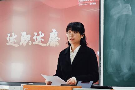 张钟勤代表院级党组织围绕政治建设、思想建设等方面汇报了党建工作情况并作个人述职。她就如何加强师德师风建设、严守宣传思想阵地、服务校园文化建设等方面工作计划作详细阐述。