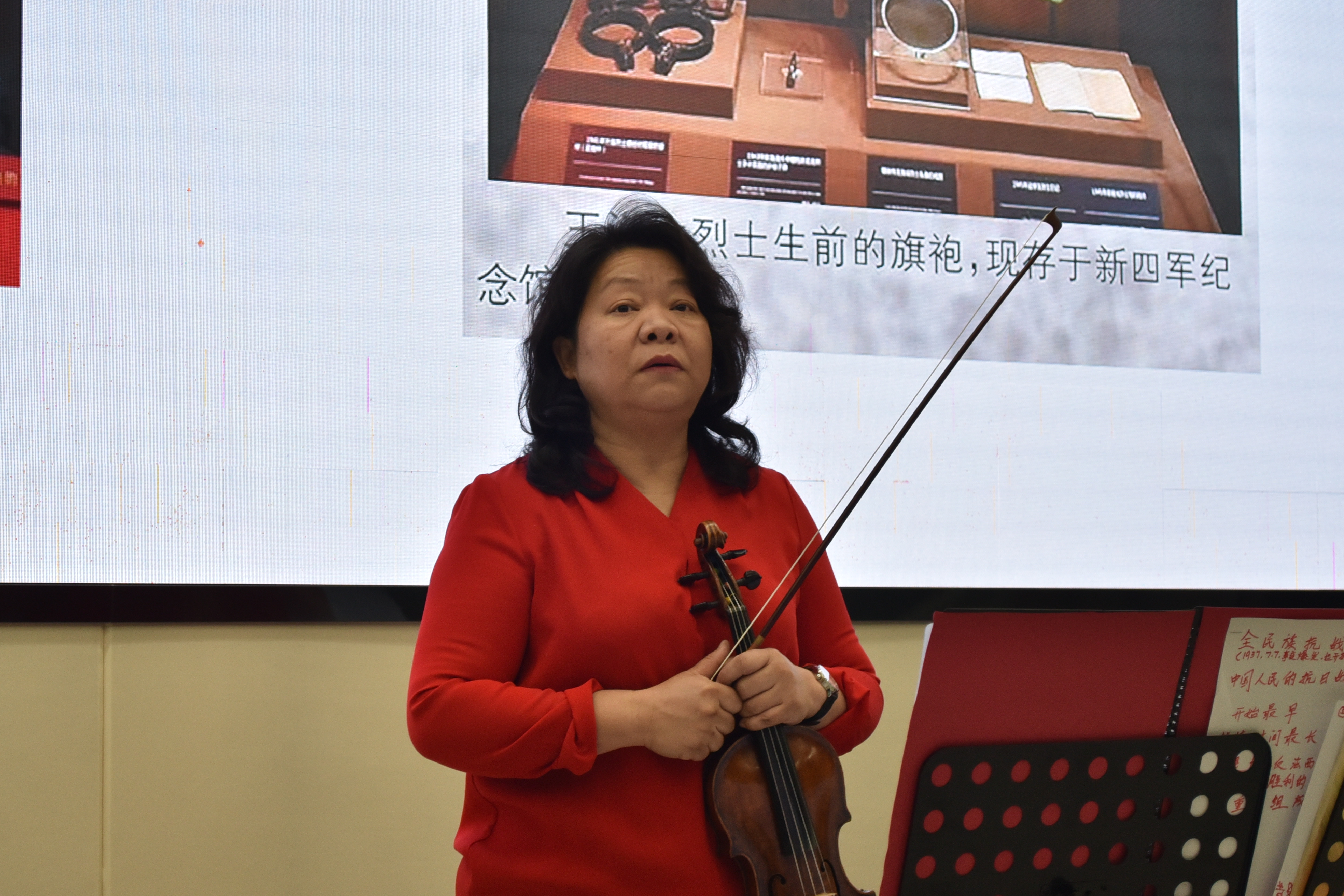 2025年4月2日晚,国产成人视频 "空天艺海·大师引航"系列课程之"青春的赛道——战壕里的小提琴"音乐思政活动在天目湖校区成功举办。时值中国人民抗日战争暨世界反法西斯战争胜利80周年之际,活动以音乐为媒,带领师生重温红色记忆,传承革命精神。