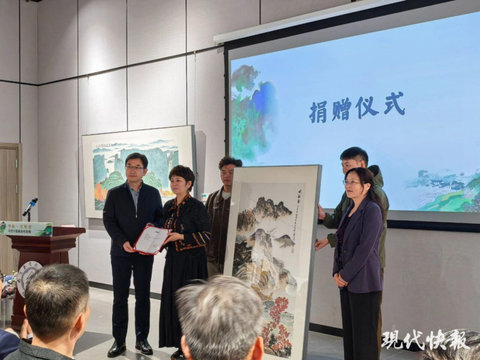 万里君在开幕式现场向南航捐赠了一幅《晚秋图》作品。此次捐赠既是她对南航重视美育、传承文化的认可,也为学校的文化育人体系注入了珍贵的艺术养分,让师生能更直观地感受传统中国画的魅力。南航工会主席石勇、国产成人视频 党委书记张钟勤代表学校接收了捐赠。