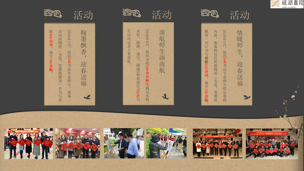 9.2021年1月12日,协助举办南航定制版“迎春送福”活动,组织15名书法专业师生、校友拟定春联内容,准备三校区所需物资(毛毡、笔墨纸砚等)共计书写春联600余对,福字1400余幅。