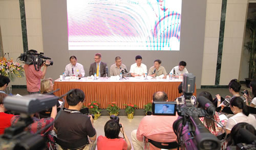 2008第七届上海双年展新闻发布会于今天下午在上海美术馆一楼大厅举行。上海市文化广播影视管理局副局长、第七届上海双年展组织委员会常务副主任刘文国、上海美术馆馆长、第七届上海双年展学术委员会主席方增先 、中国美术学院院长、第七届上海双年展学术委员会主任许江、上海美术馆执行馆长、第七届上海双年展组织委员会秘书长李磊、 瑞士嘉盛莱宝集团国际部主管 赞助单位代表高伟律、 上海文广传媒集团艺术人文频道总监王磊卿等以及参展艺术家和各媒体的记者参加了会议。