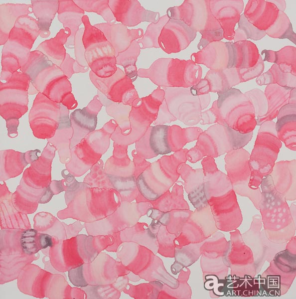 以粉色瓶子铺满整个画面从而崭露头角的李婷婷依旧在自己的喜欢题材中进行着尝试与创新。日常生活中的所熟悉的瓶子、杯子、女鞋、衣服、瓜子、斑马等等都走进了她的画面,她把这些物品不规则的排布与堆积透叠在画面之中,犹如从天而降瞬间定格在了画面之中一般。运用传统的绘画表现媒介、粉色时尚感觉的画面以及合理的布局设计使得她的作品在艺术、时尚与设计中找到了很好的平衡点。
