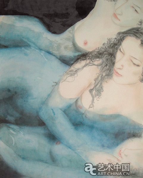 李戈晔把自己对生活的思绪停留在了自己的画面之中,水中漂浮挣扎状态的人体正是她对生活亲身体验之后的感悟,这种状态也是许多当下人的真实生活的写照,具有广泛的普遍性。此次新作没有了她以往的抒情画面,反而是强有力的写实感,这再次印证了李戈晔对水墨的执着与创新能力,总能看到她不断在自己的水墨道路上前进的步伐,带给观者新鲜的画面之感