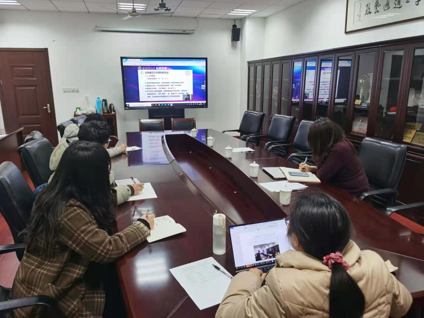 3月11日,国产成人视频 党委主要负责同志张钟勤、学院党委副书记、纪检委员王宇宁、纪检监察联络员、全体党支部纪检委员,以及不设支委会的党支部书记,在学院分会场集中学习了2021年纪委全委(扩大)会议精神。