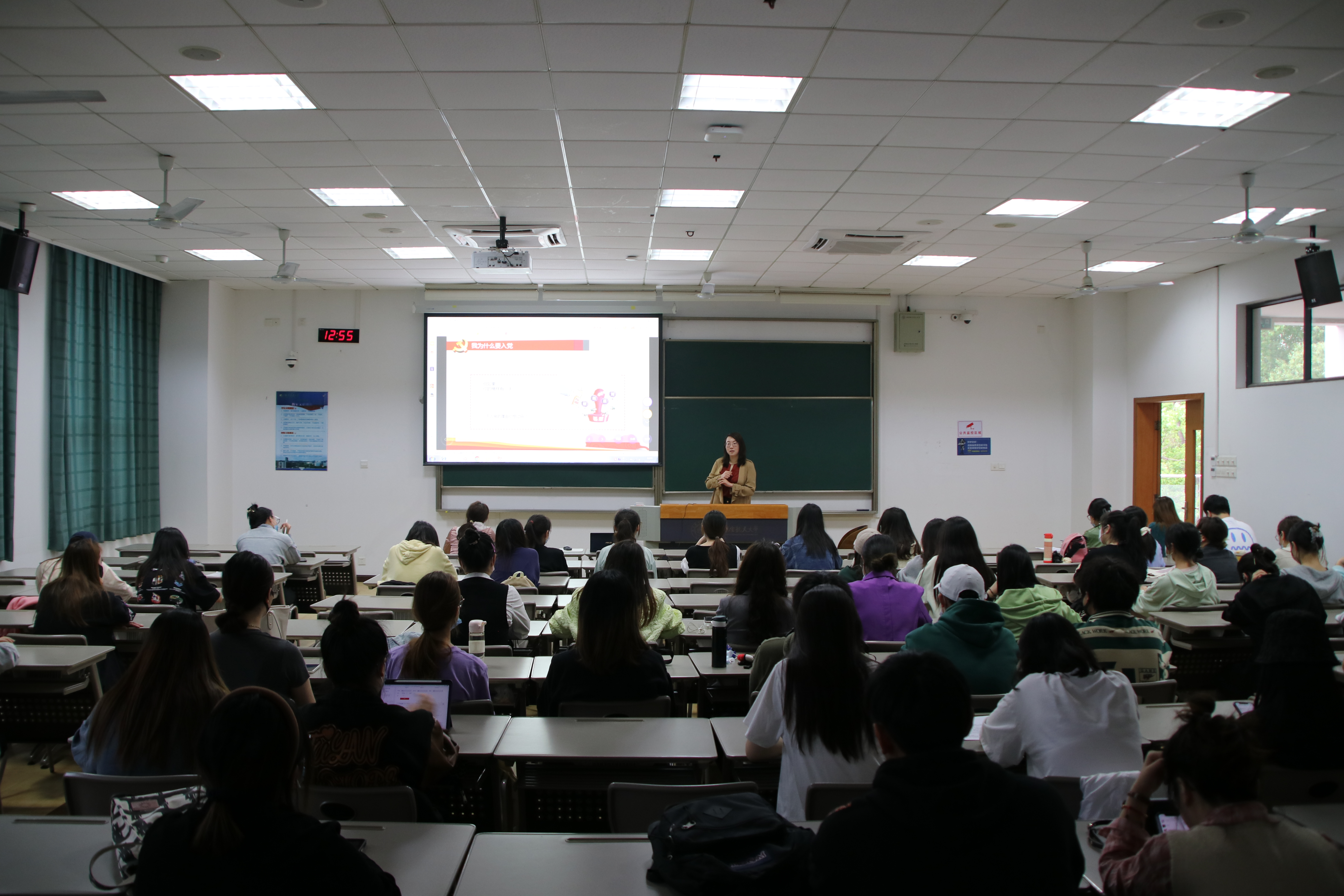 接着,她又向同学们提出问题“什么样的人有资格成为党员?”通过互动讨论,明确了成为党员过程也是经受考验的过程。指出,合格的党员要能做到对群众全心全意奉献,吃苦在前,享乐在后,通过不断“加强理论学习”、“主动靠拢党组织”、“在实践中锻炼”、“争当表率”,使思想和行动逐步达到合格党员的标准,践行党员的初心和使命。