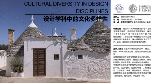 Stefano Follesa,意大利佛罗伦萨大学;博士、教授;DSR实验室主任(空间关系设计实验室)。主要研究领域为设计与地域身份之间的关系、文化多样性的主题等,特别关注物体、空间和场所之间的联系性。在该领域的相关研究,主要涉及大学活动中的科学研究活动(领导研究小组、论文写作、论文和专著)、传播活动(大学教学、讲座、展览和会议、研讨会)以及在专业活动中将理论阐述应用于具体主题(室内设计、城市设计、产品设计)等。