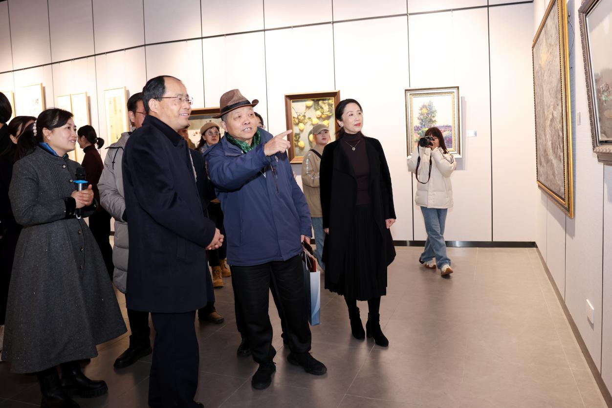 单忠德代表学校对所有支持、参与学校美育工作和砚湖美术馆建设的领导嘉宾、师生员工表示诚挚感谢。他表示,习近平总书记指出,美术、艺术、科学、技术相辅相成、相互促进、相得益彰。学校举行砚湖美术馆开馆美术作品展暨美术专业教师备课展,是深入贯彻习近平总书记教育科技人才重要论述的重要举措,是持续推进校园美育的又一项实践成果,也是学校“空天艺海·大师引航”美育课程的拓展延伸。希望学校各部门、各学院继续投入更多力量,将校园文化活动办得更多、办得更好,进一步繁荣校园文化、服务人才培养,引导广大师生坚定文化自信、厚植家国情怀、提升人文艺术素养,不断开拓学校美育工作新局面。