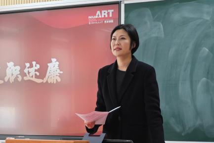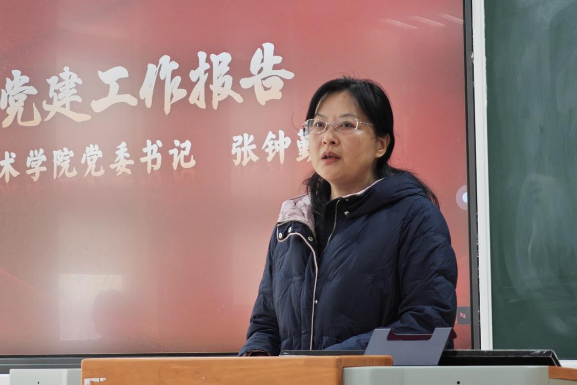 张钟勤代表院级党组织围绕政治建设、思想建设等方面汇报了党建工作情况并作个人述职。她就如何加强师德师风建设、严守宣传思想阵地、服务校园文化建设等方面工作计划作详细阐述。