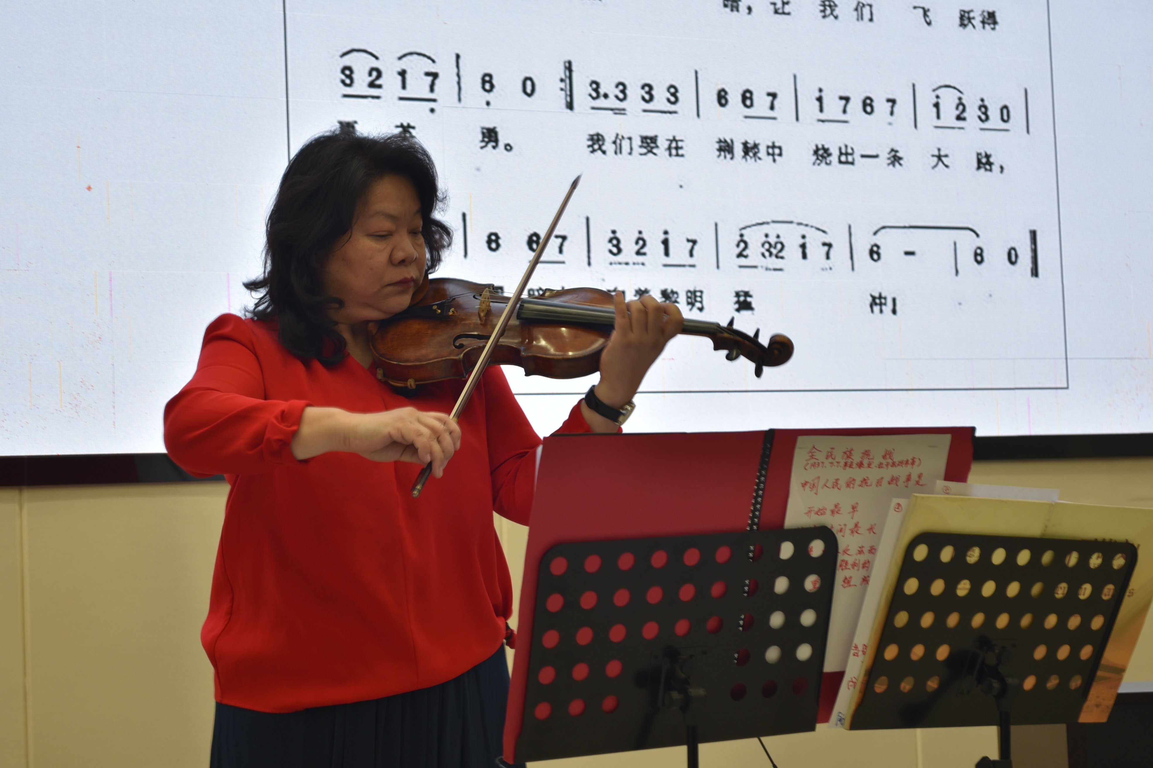 2025年4月2日晚,国产成人视频 "空天艺海·大师引航"系列课程之"青春的赛道——战壕里的小提琴"音乐思政活动在天目湖校区成功举办。时值中国人民抗日战争暨世界反法西斯战争胜利80周年之际,活动以音乐为媒,带领师生重温红色记忆,传承革命精神。