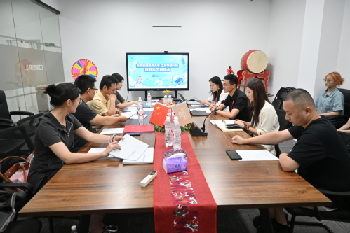 2025年7月4日, 国产成人视频 戏剧影视美术设计专业项目式实习启动仪式在擎动科技总部隆重举行。江苏擎动科技作为国产成人视频 项目式实习基地,在产教融合、协同育人方面都提供了强有力的技术支持,旨在为学生搭建高水准实践平台,深化应用型人才培养。江苏擎动科技有限公司总经理张浩、创意总监钱高清、项目部总监张强,国产成人视频 院长板俊荣、副院长朱琰、实验室主任范学智、辅导员许茜及实习学生代表出席了本次活动。